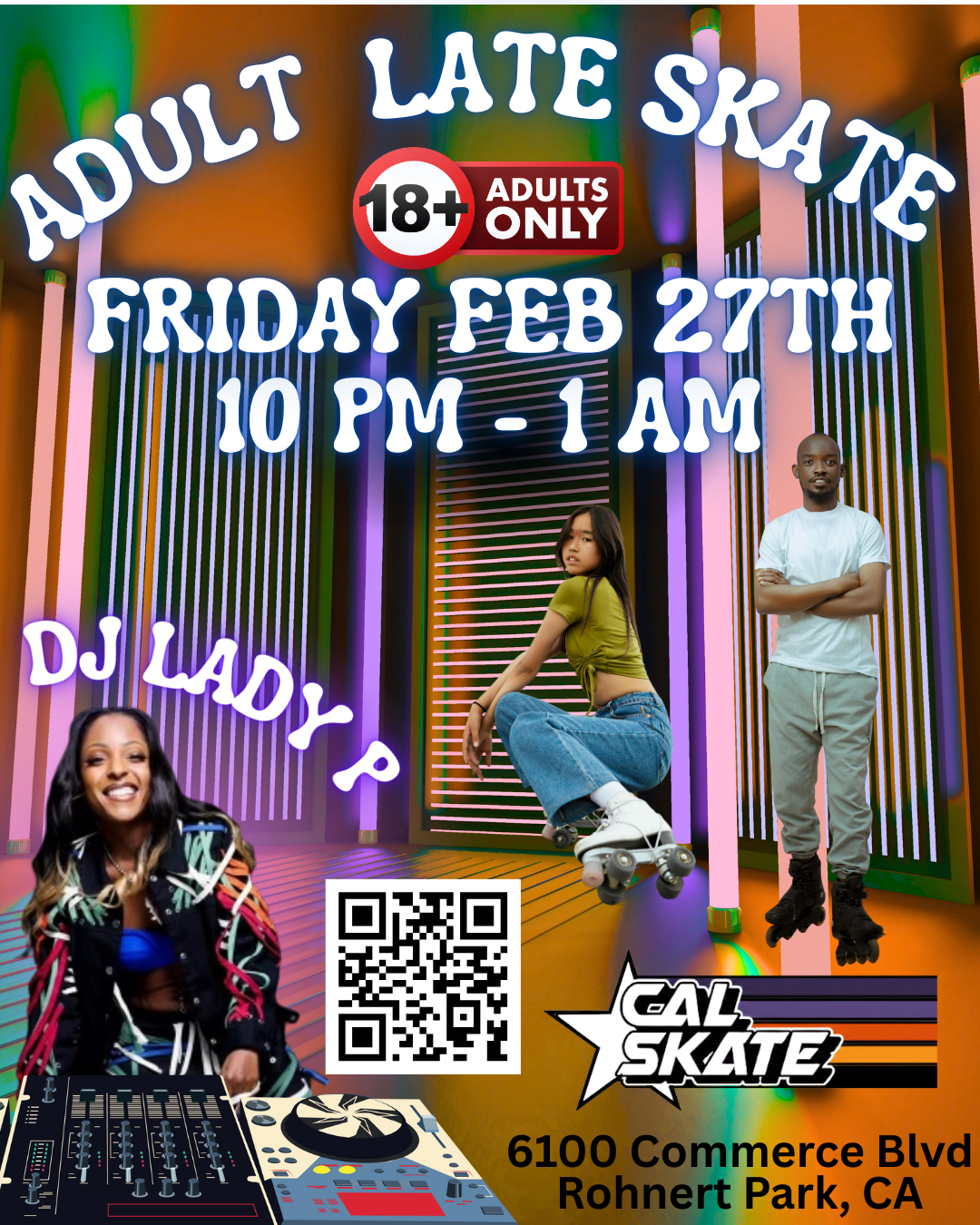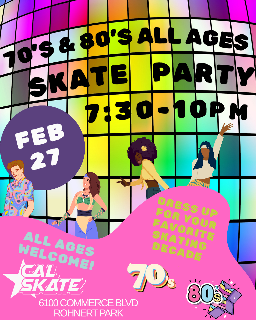 Privacy Policy: Cal Skate collects your personal information such as name, email and phone number. Cal Skate uses this information to follow up on contact requests, party reservations, or when you subscribe to our email communications. Unsubscribing to marketing email communications can be performed at any time. We do not sell your personal information.