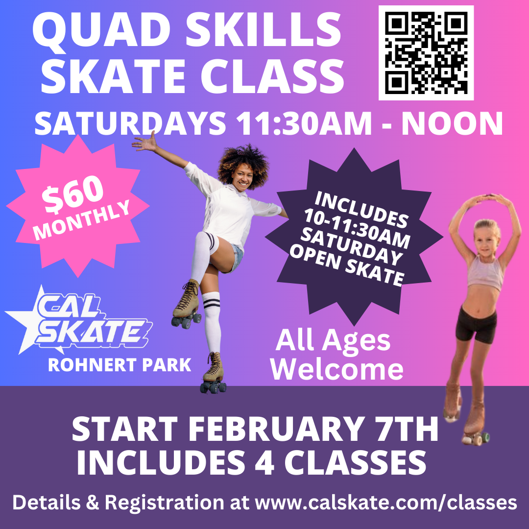 Find out more from Coaching Staff during our Saturday Quad Skate Skills Class or email us at skate@calskate.com for more information.