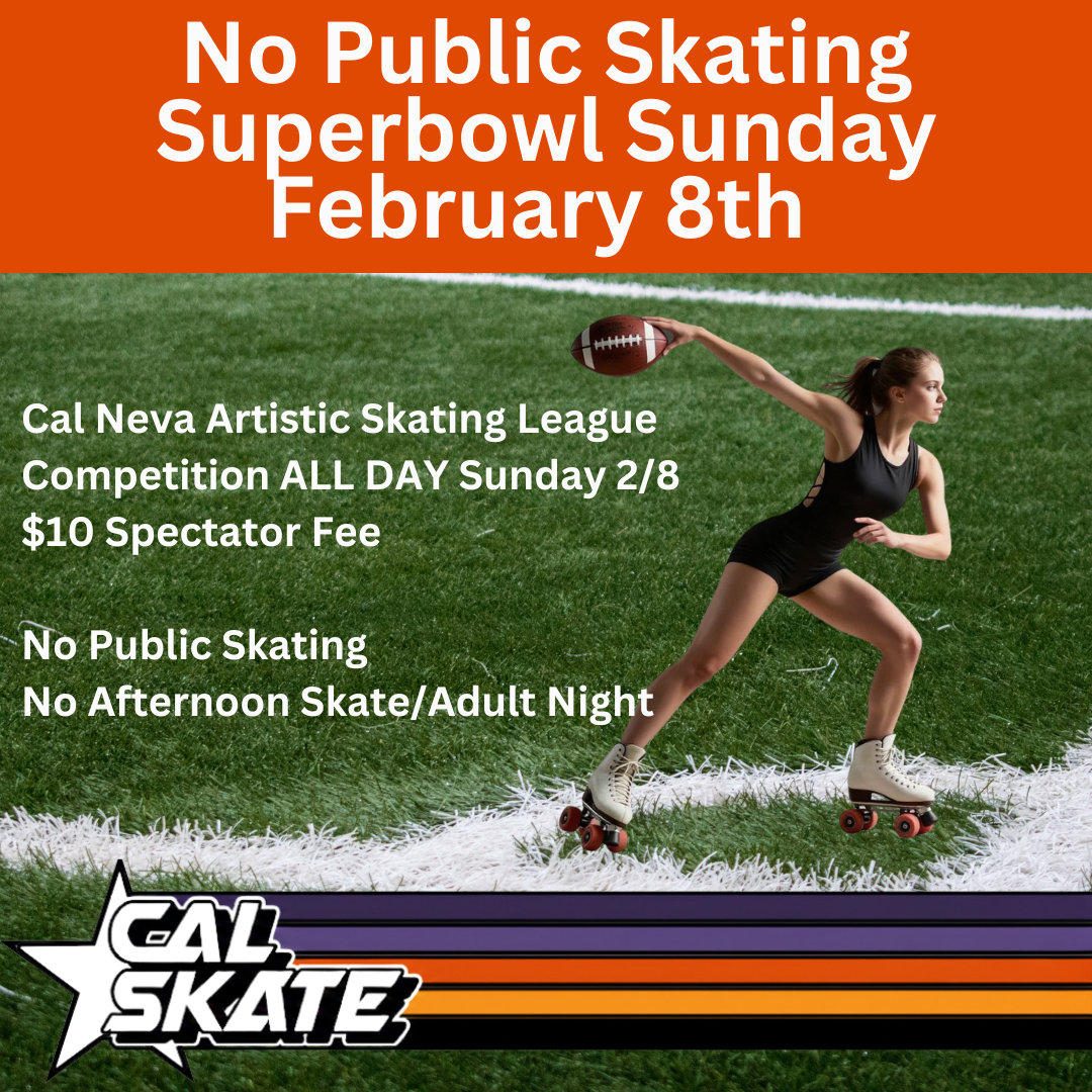 No Public Skating on SuperBowl Sunday, February 8th. Cal Skate will be hosting the Cal Neva Artistic Skating League for an ALL DAY competition. Spectators are welcome.